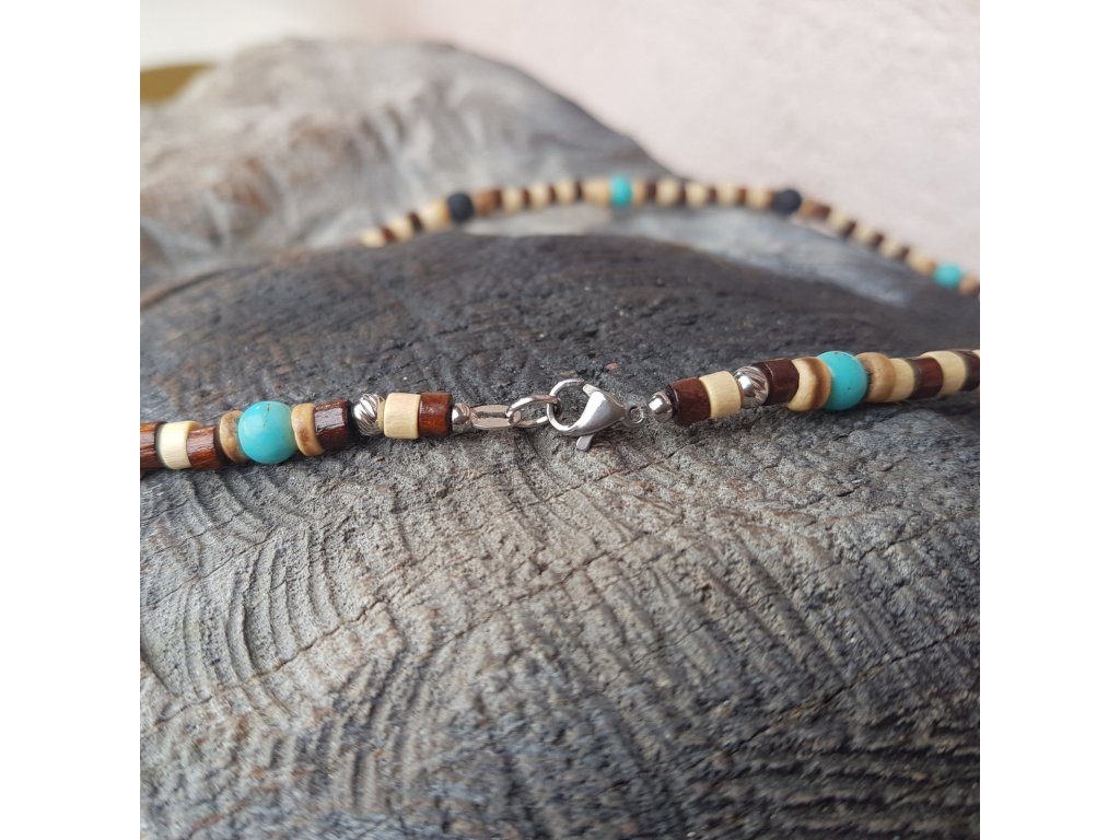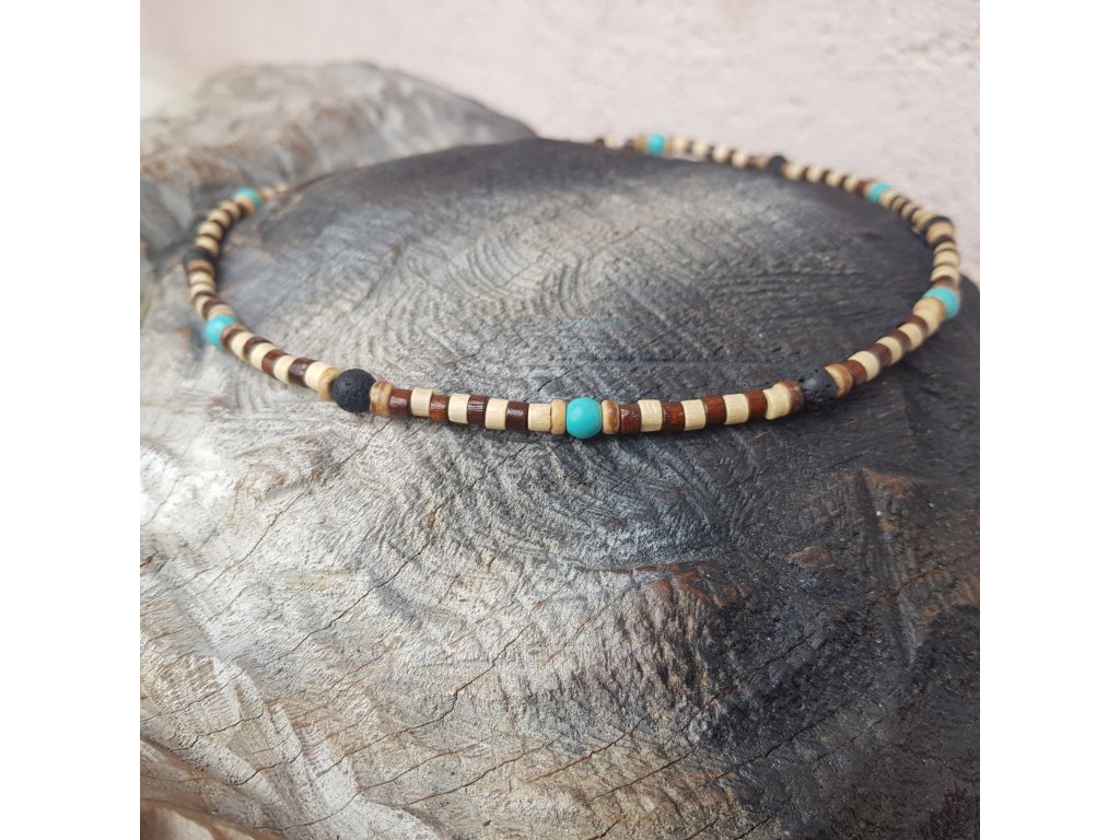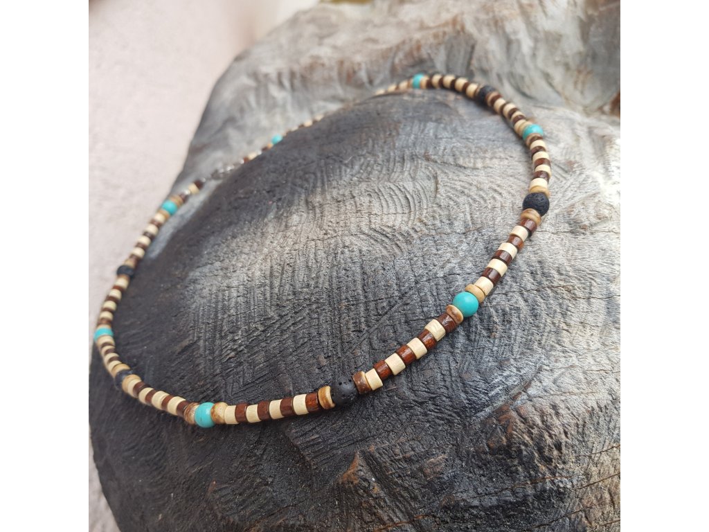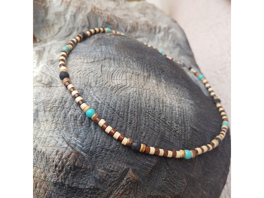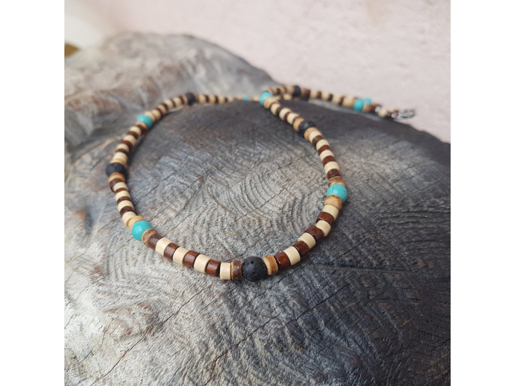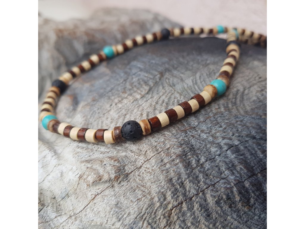 "Menko 20" Pánský náhrdelník (tyrkys, láva, dřevo)