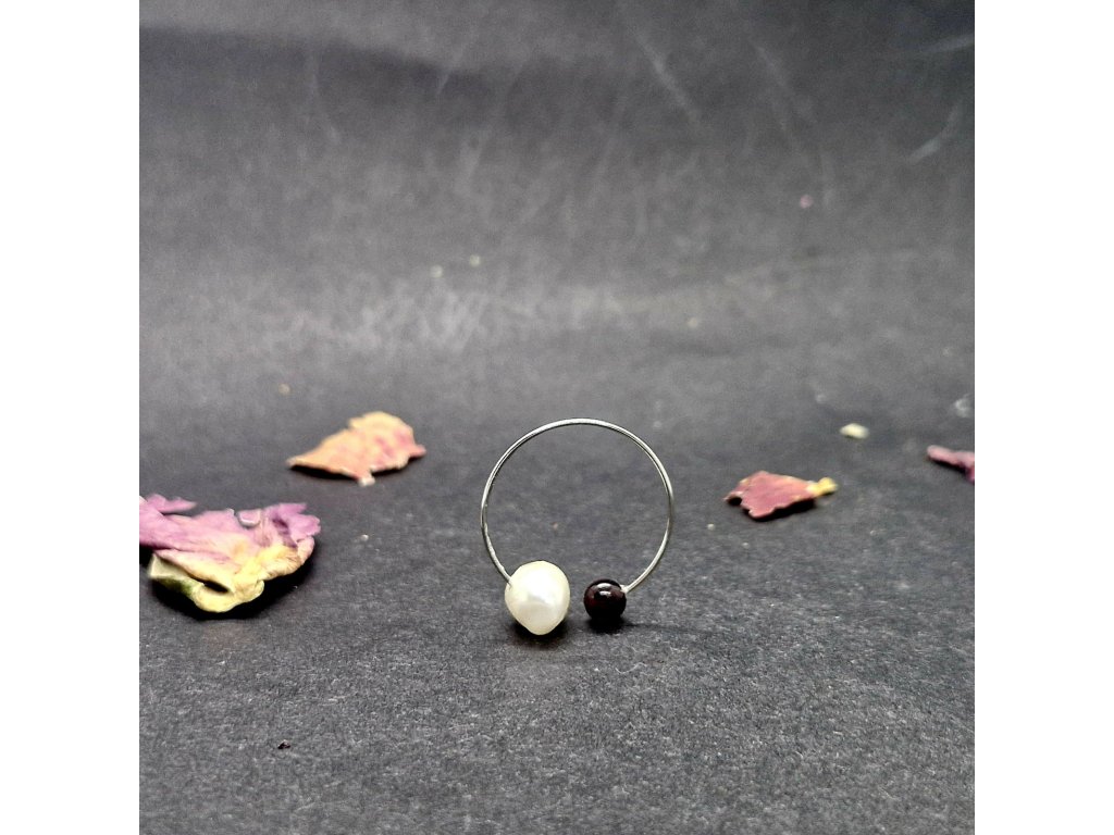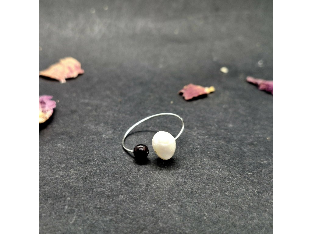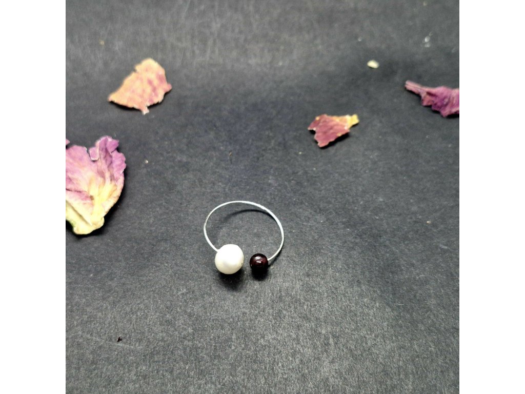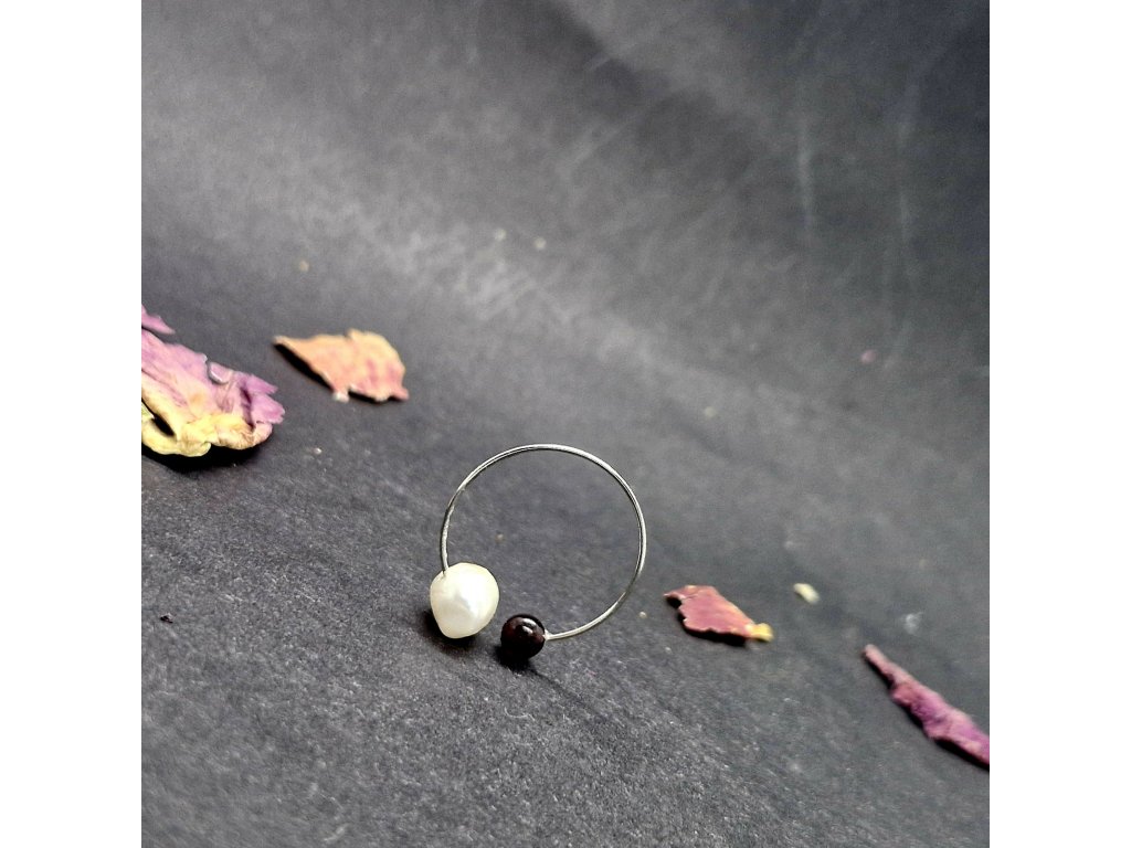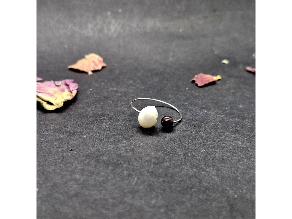 Minimalistický, jemný, něžný...Autorský prstýnek s kuličkou granátu a říční perličkou.