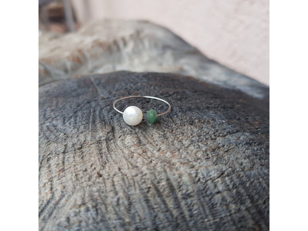 Jemný minimalistický prstýnek se zlomkem avanturínu a pravou říční perličkou.