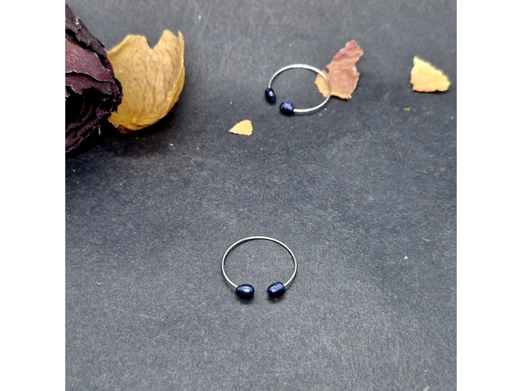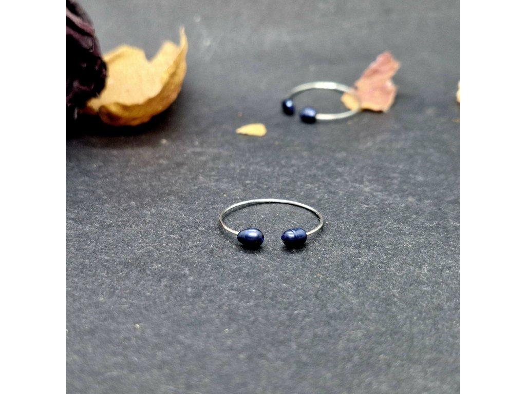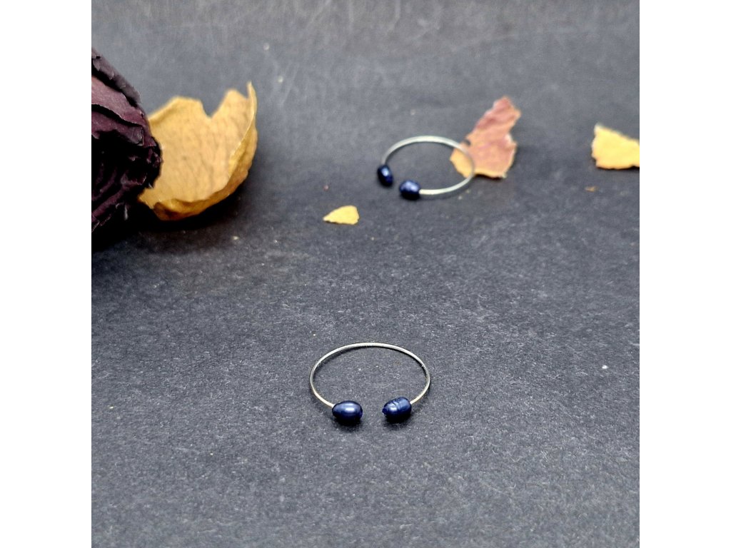 Jemnost...Autorský minimalistický prstýnek s modrými říčními perličkami.
