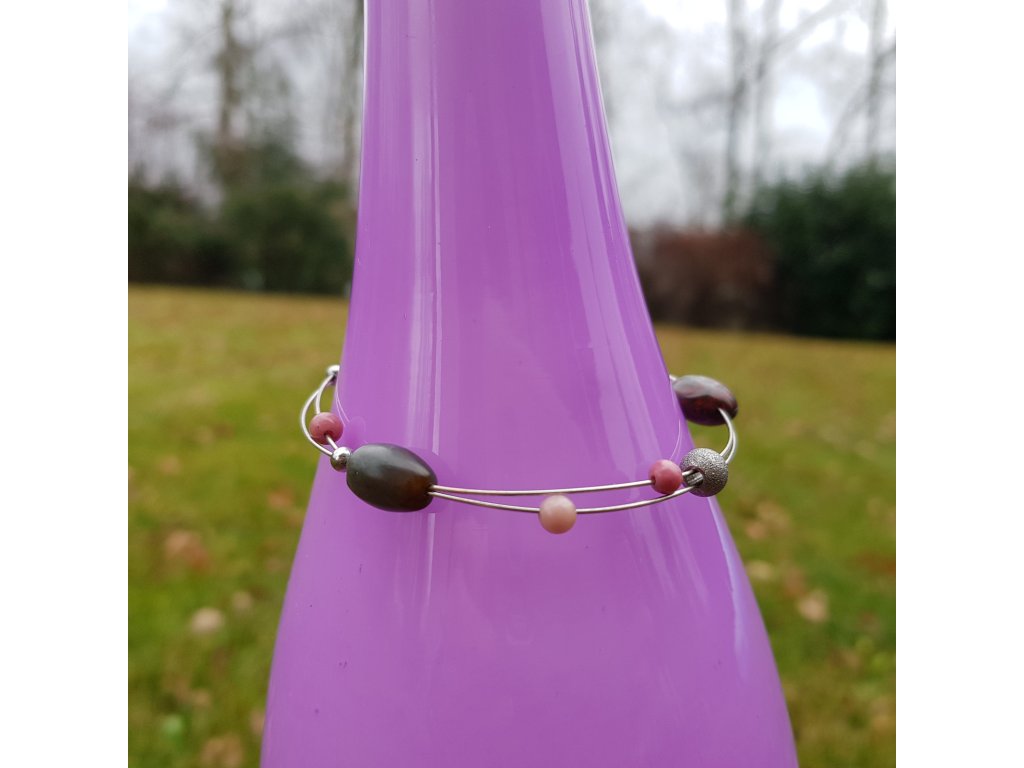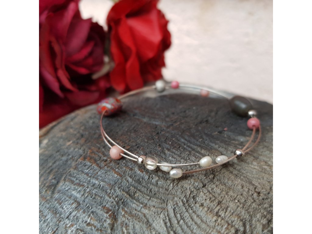 Náramek je z pružné paměťové oceli, tudíž se přizpůsobí téměř každému zápěstí. Je lehoučký jako pírko a díky slabému dvojitému drátku nádherně vyniknou minerály, které jakoby levitují.