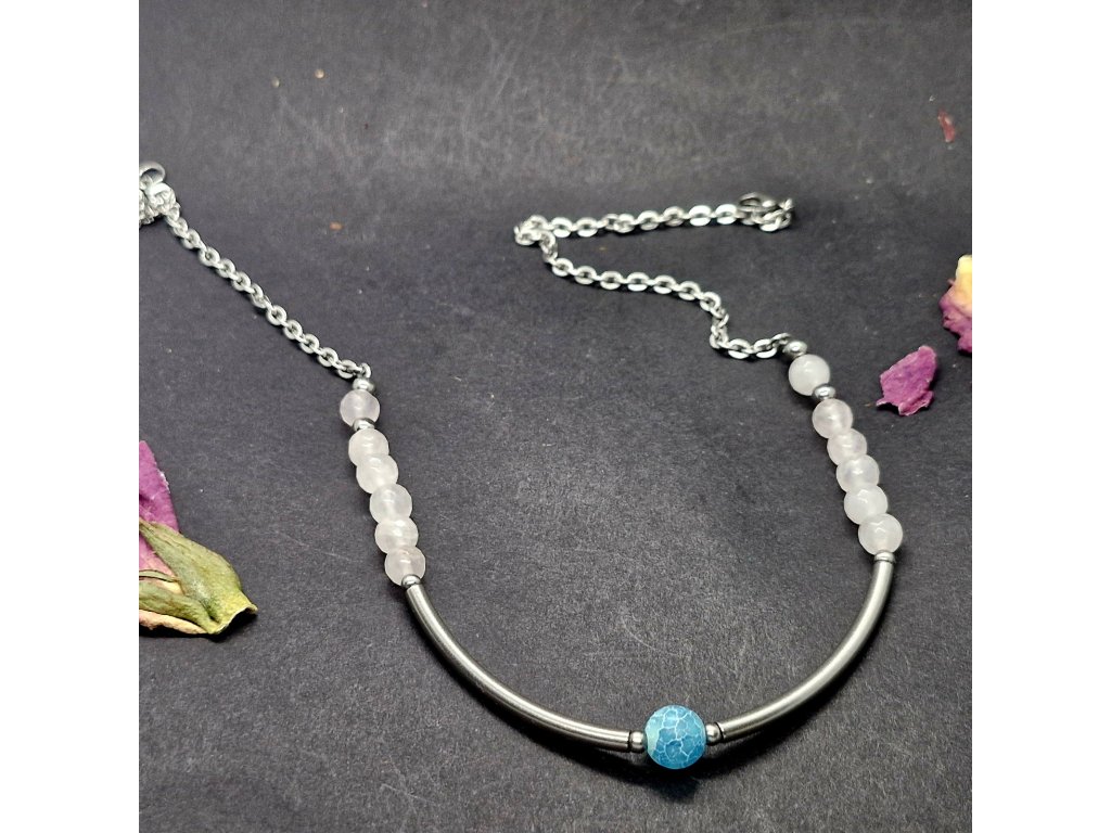 "Runna 2" Náhrdelník (ocel, růženín, achát)