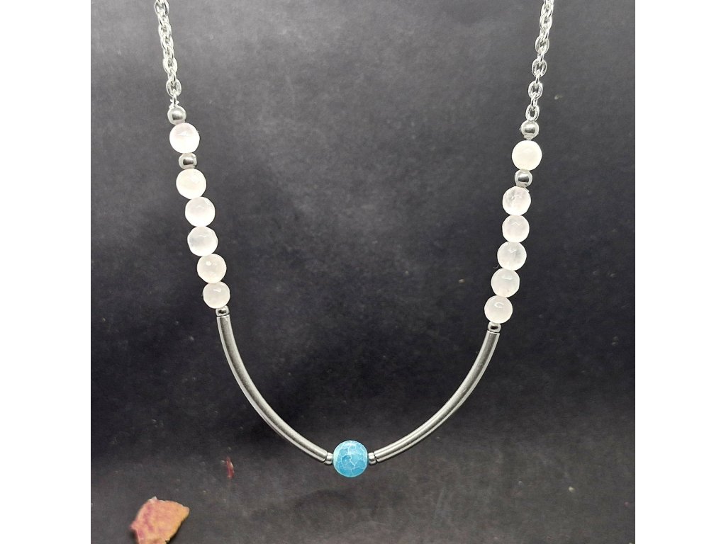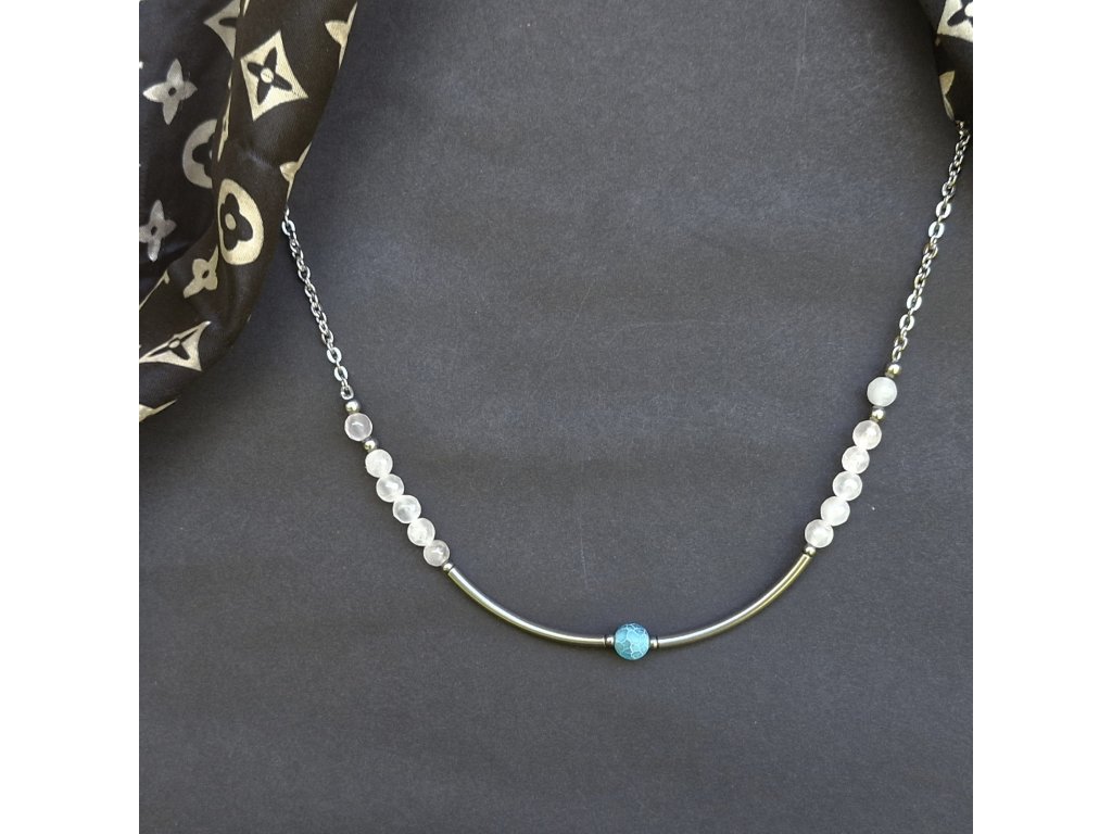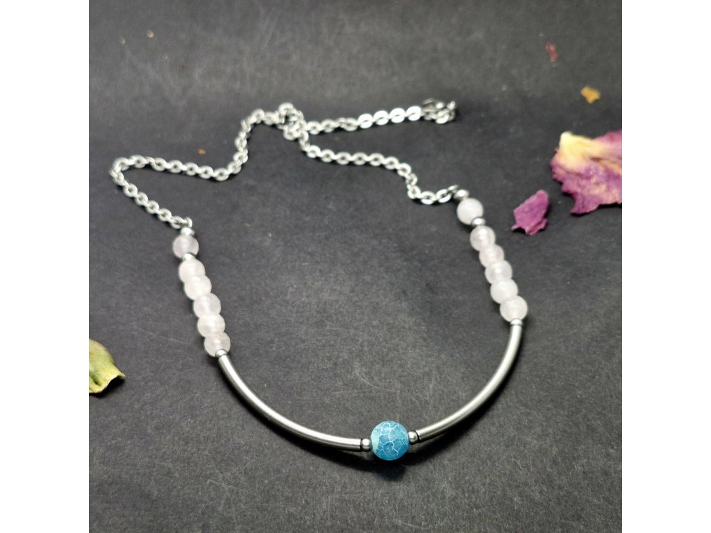 Tento náhrdelník z nerezové oceli s precizně zpracovanými tyčinkami je dílem, které kombinuje nadčasový styl a sílu kamenů.