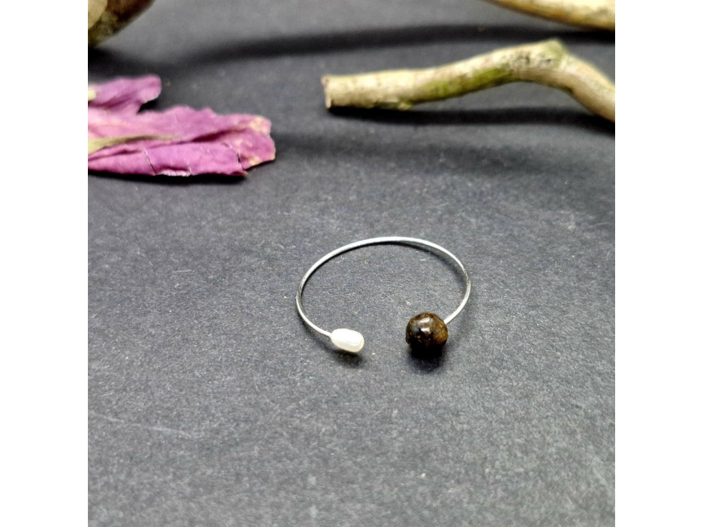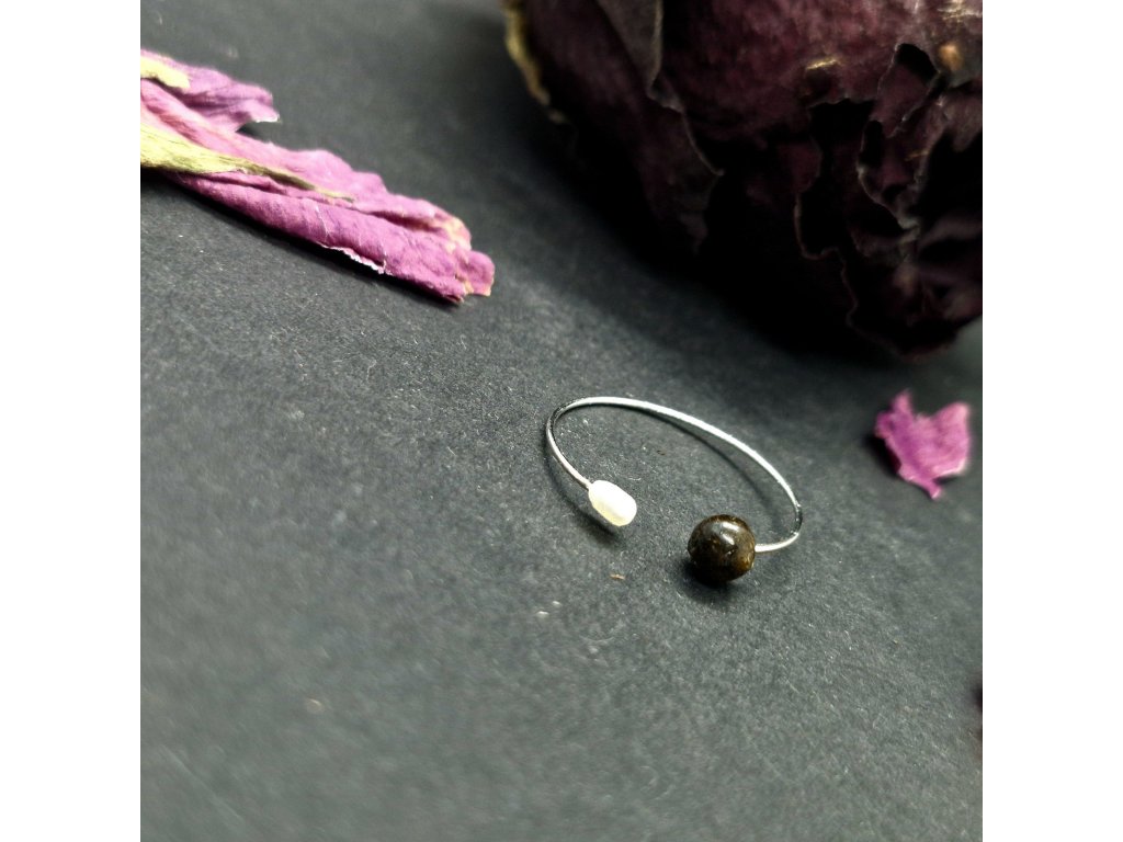 Minimalistický, elegantní a něžný...Originální prstýnek zdobený kuličkou jaspisu a říční perličkou.