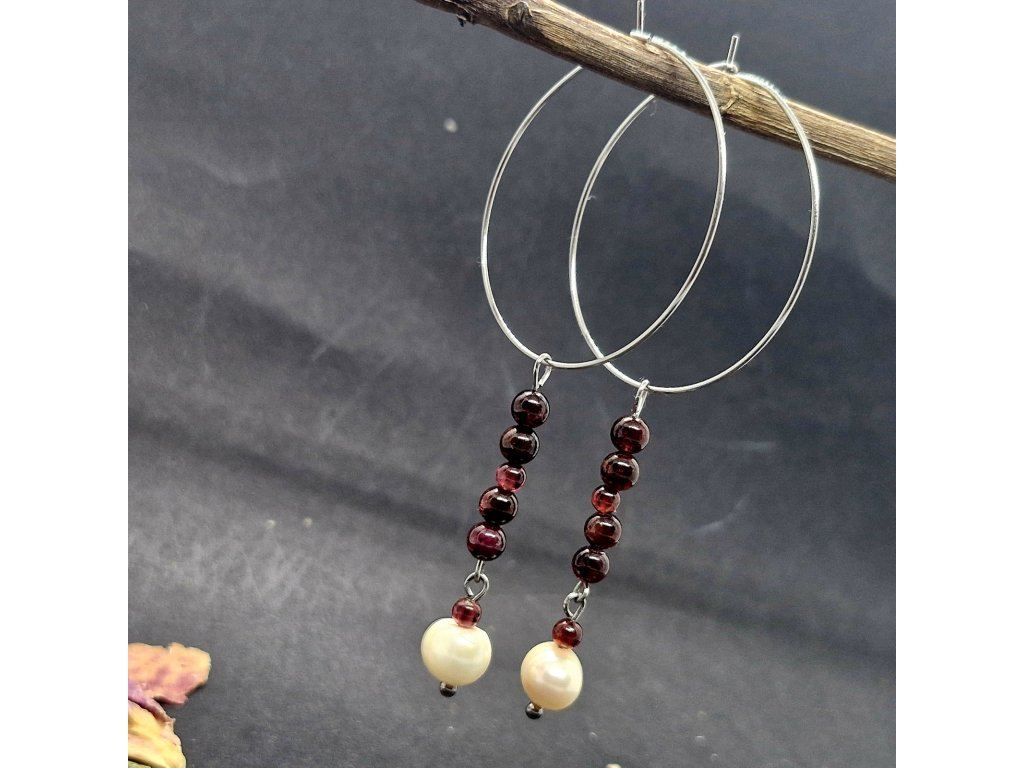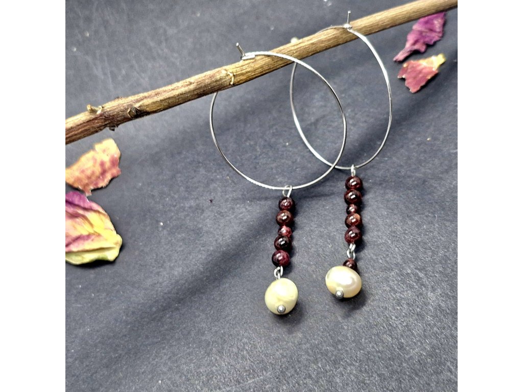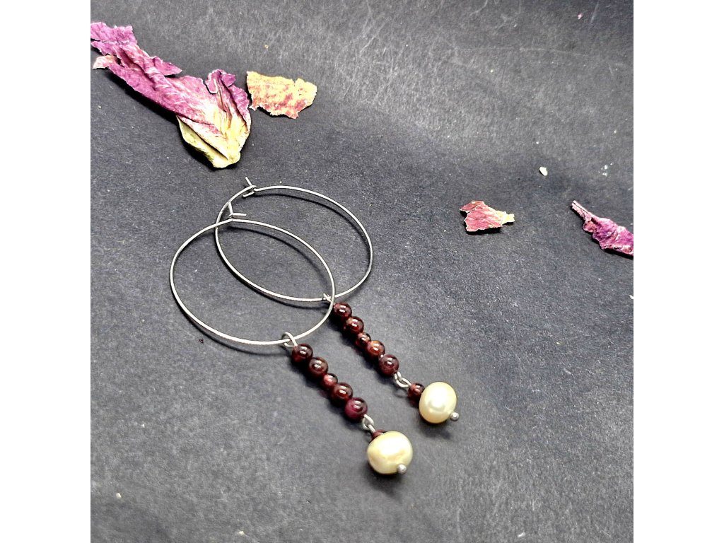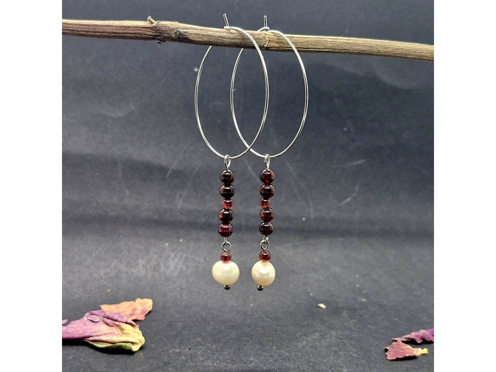 Tyto nádherné kruhové náušnice spojují hlubokou, ohnivou barvu granátu se zářivou, klasickou krásou perly. Výsledkem je šperk, který je výrazný, ale zároveň neskutečně ženský a jemný.