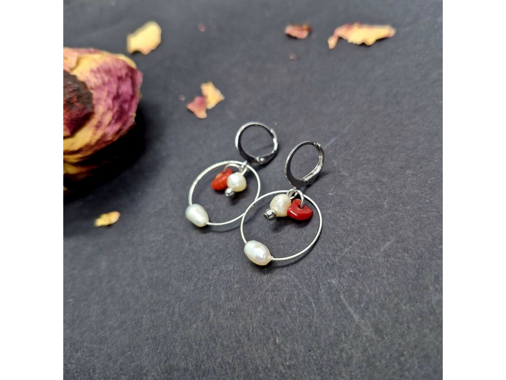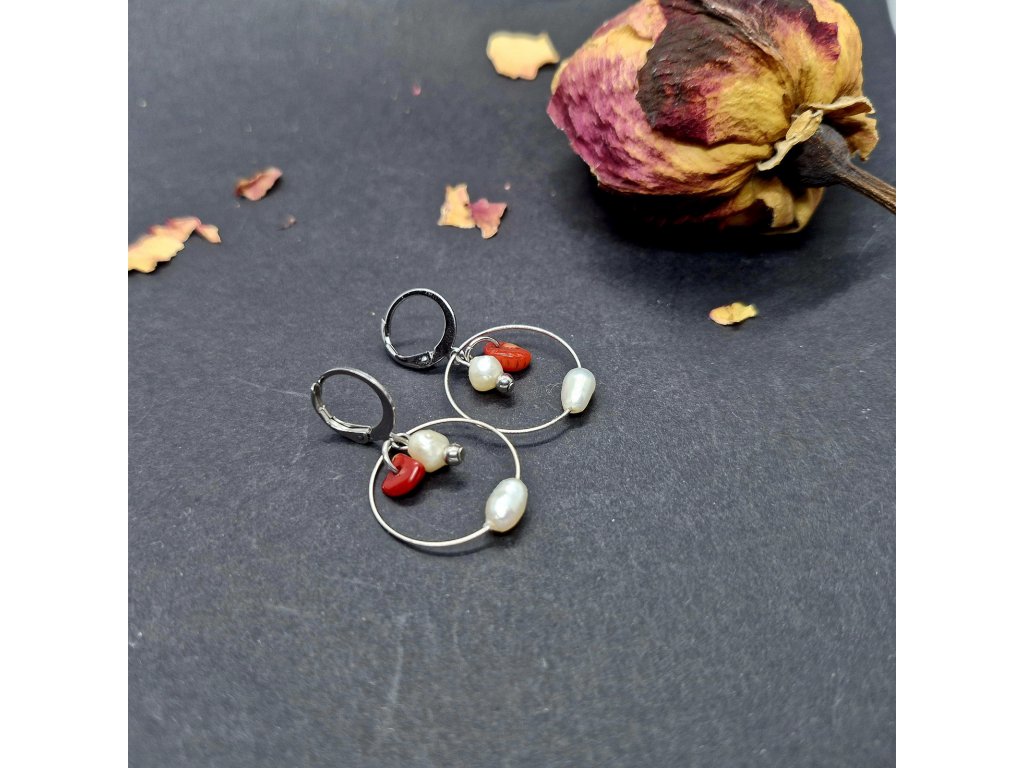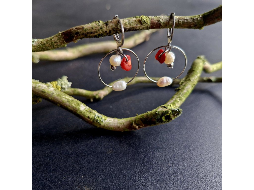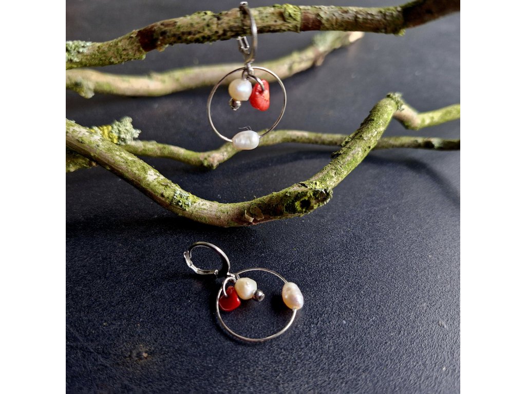 "Nevšednosti 3" Náušnice (perly, korál, nerezová ocel)