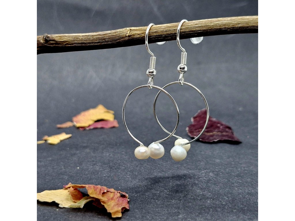 Elegantní ručně vyráběné náušnice zdobené říčními perlami.