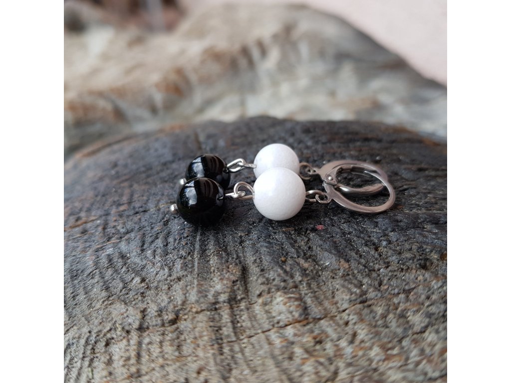 Náušnice s mechanickým zapínáním jsou rovněž z nerezové oceli s onyxem a nefritem.