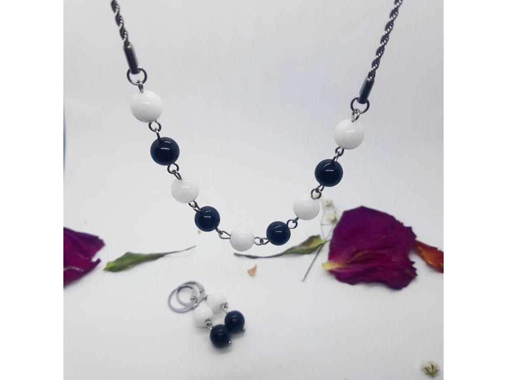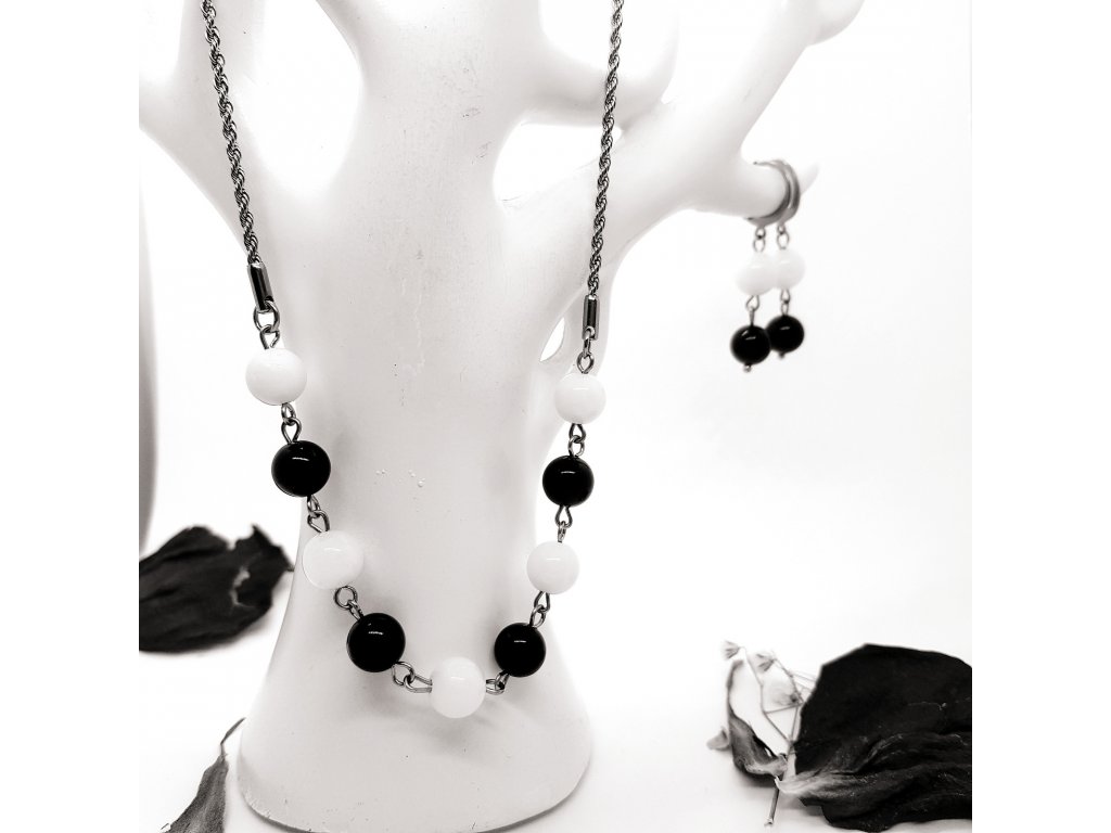 Autorská souprava náhrdelníku a náušnic z kolekce Sande v klasické černobílé.