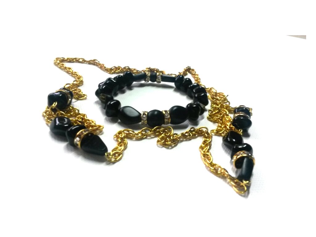 Souprava náhrdelníku a náušnic. Přívěsek z kroužků s hematitem je zavěšen na hadím řetízku z velmi kvalitní nerezové oceli. Jednoduché náušnice s mechanickým zapínání jsou ve...