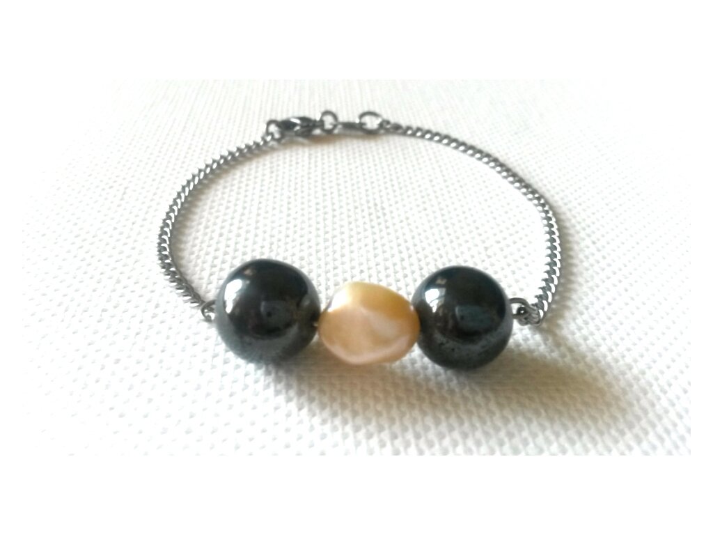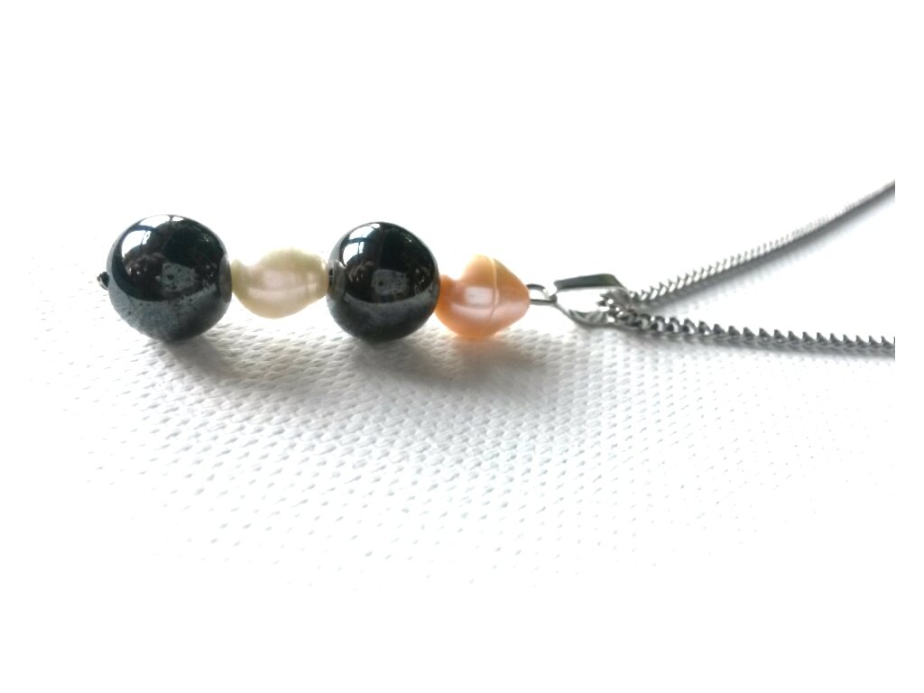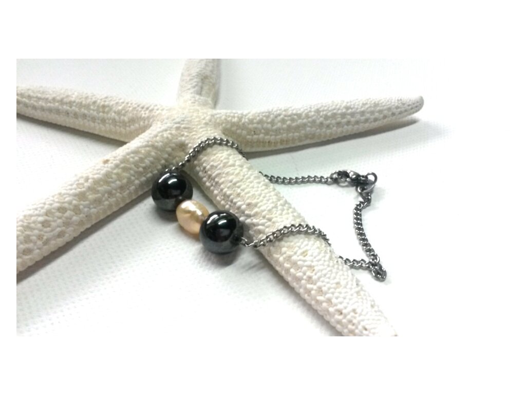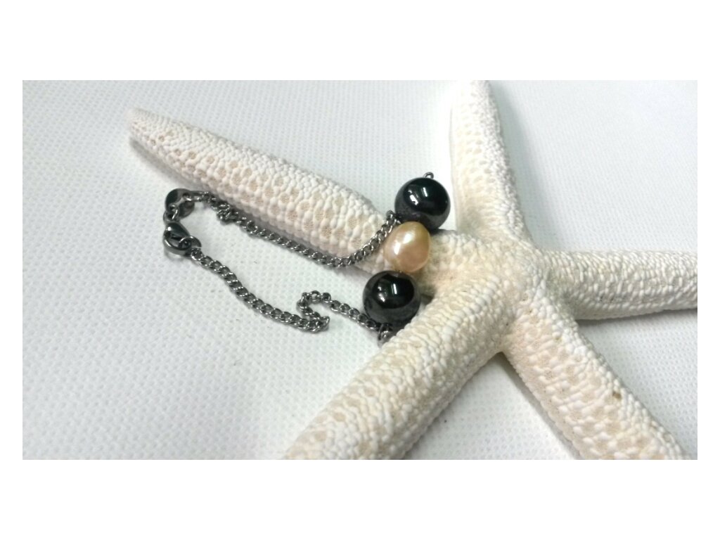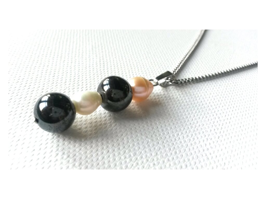 Souprava "Zářivé nebe" (Hematit, perly, ocel)