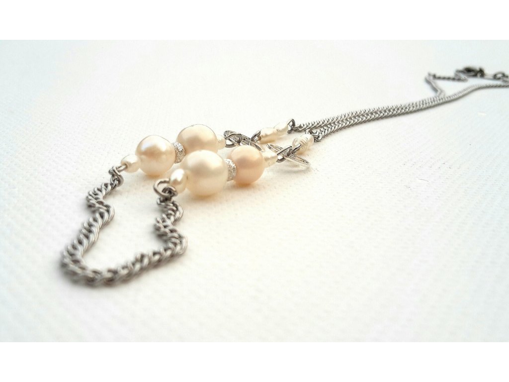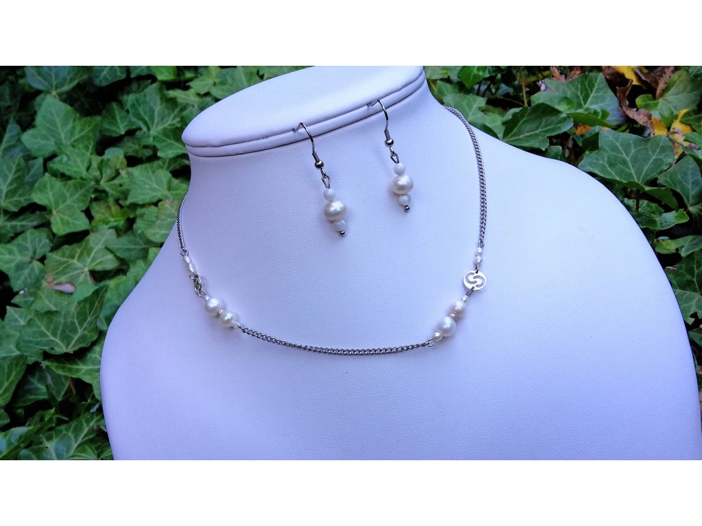 SADA - Náhrdelník "Salli" (ocel, Ag, perly) + Něžné náušnice s říčními perlami a perletí