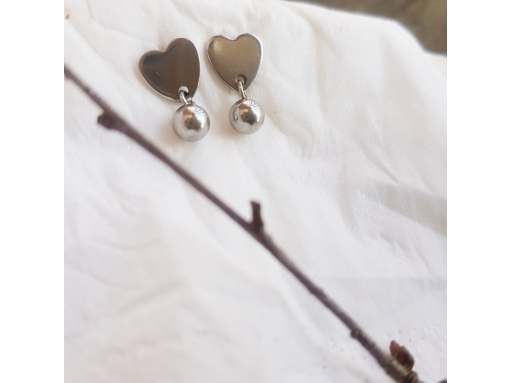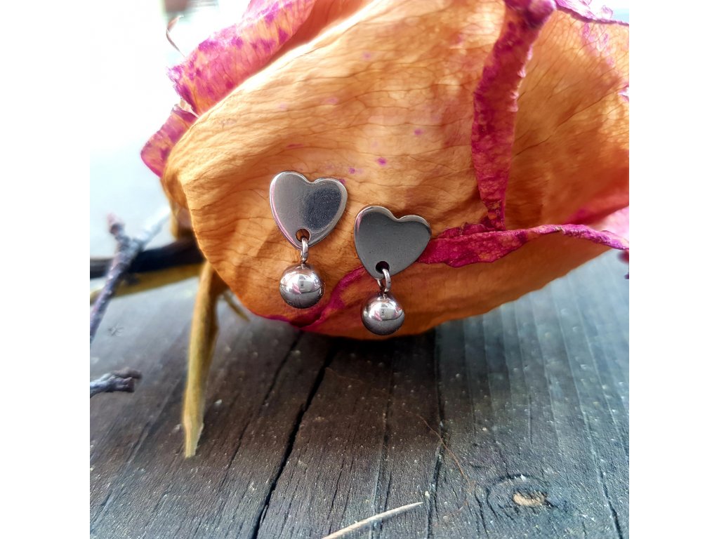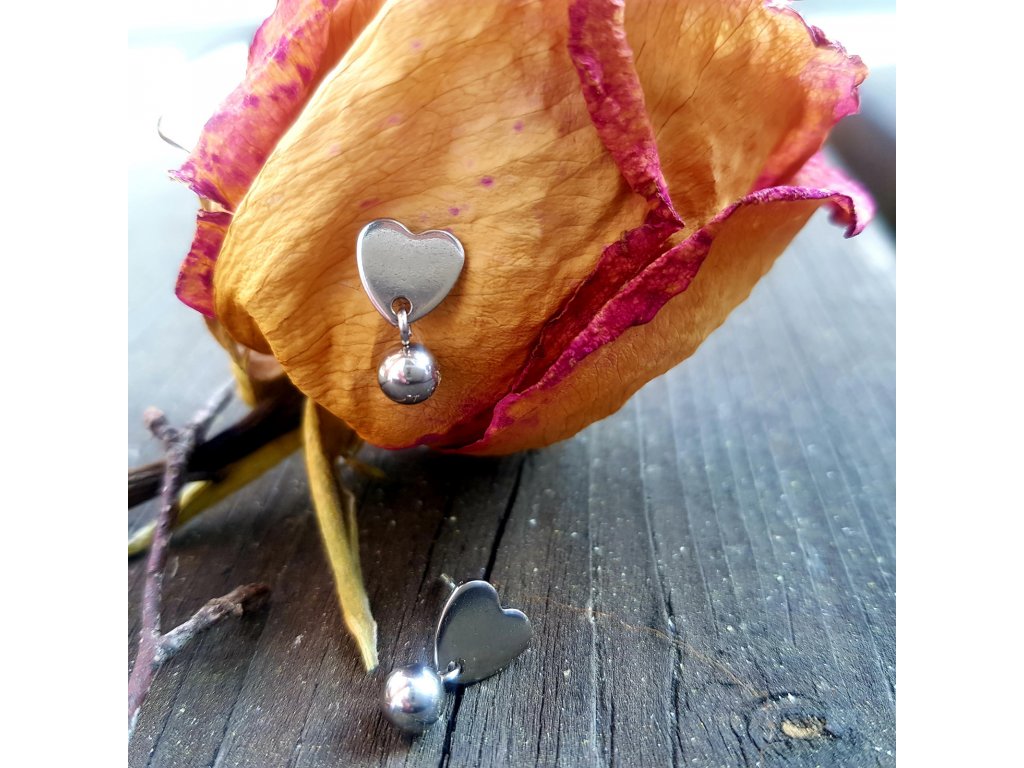 Pro všechny zamilované srdcařky tu máme náušnice z nerezové oceli ve tvaru srdíčka s přívěskem ocelové kuličky.